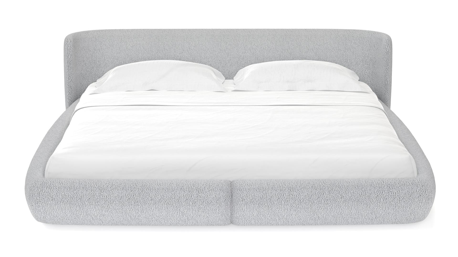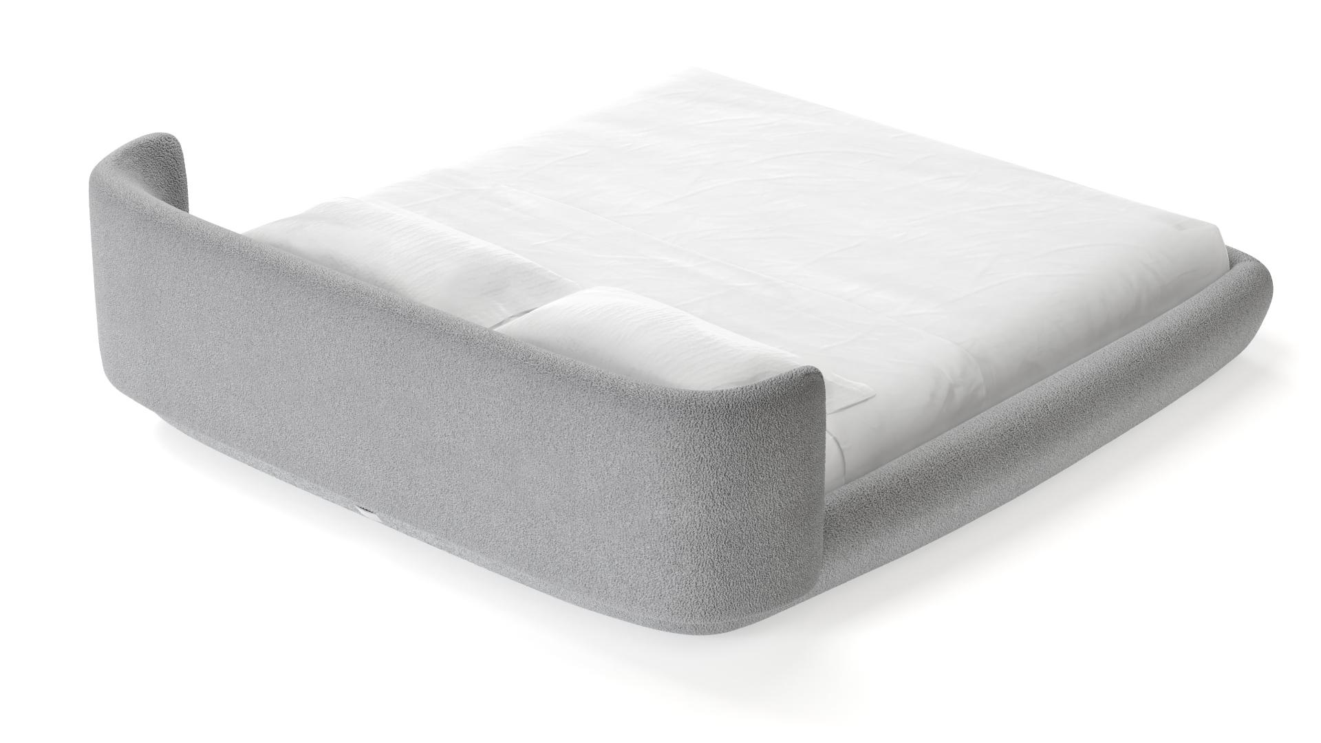 Baixa é a primeira cama da WENTZ e traduz a intenção do designer de convidar as pessoas a deitarem próximo ao chão. A estrutura curva e estofada quebra a rigidez do colchão e convida ao relaxamento. O revestimento exclusivo WE— KNIT— malha 3D feita a partir de PET reciclado — promove um toque macio e aconchegante em uma superfície sem costuras.