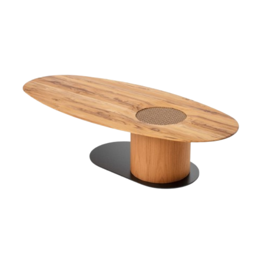 A mesa de centro Raco é um elo entre dois mundos: o dinâmico e o sereno. Seu design elegante e multifuncional é caracterizado por linhas retas e formas geométricas, que remetem à estrutura e à ordem dos edifícios urbanos. Ao mesmo tempo, utiliza materiais naturais, como madeira e palha, que evocam a calma e a solidez da paisagem natural.