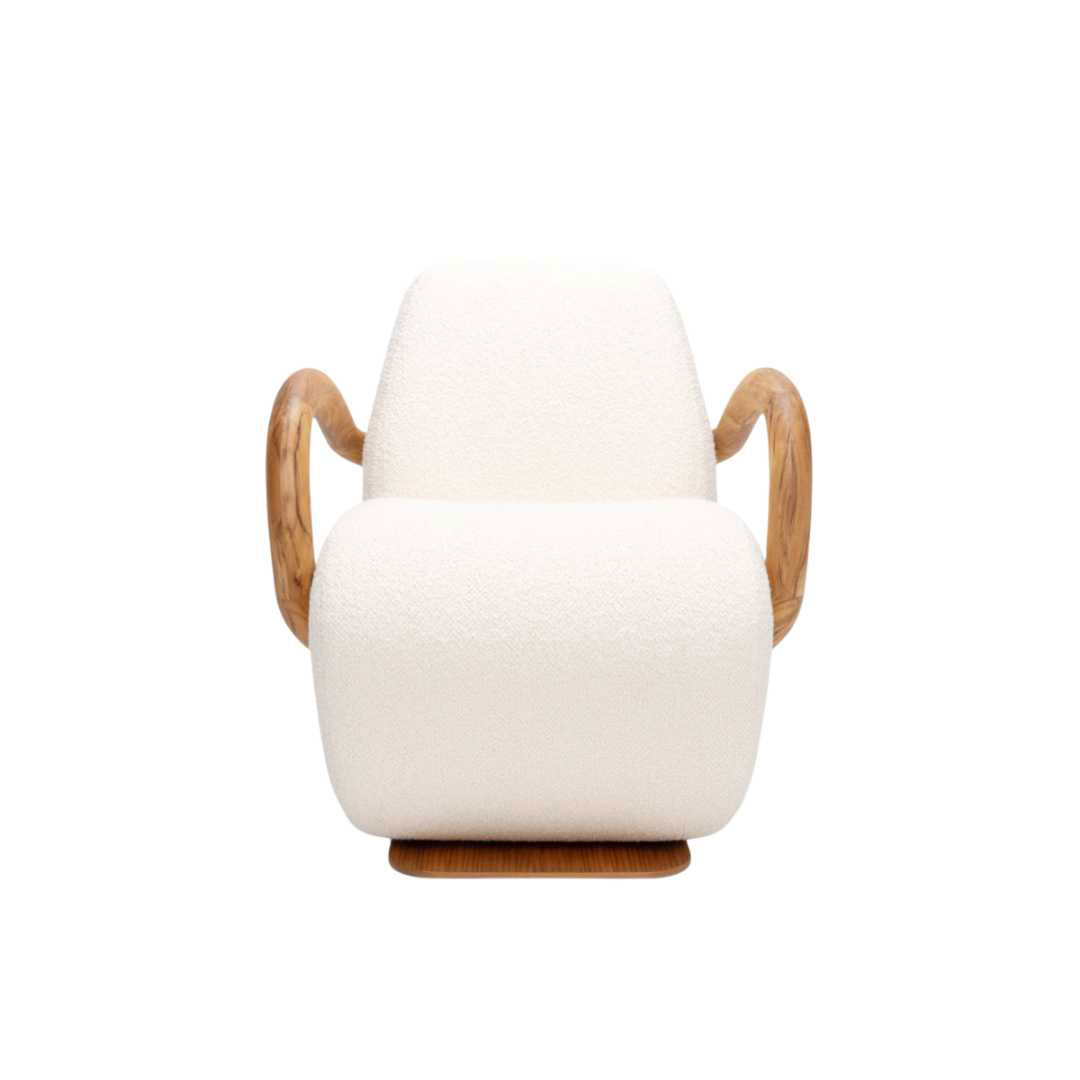 Inspirado na exuberância e biodiversidade da Floresta Amazônica ao redor do Rio Juruá, o design da poltrona incorpora formas orgânicas e curvas suaves que lembram os meandros do rio e as formas naturais encontradas na selva.