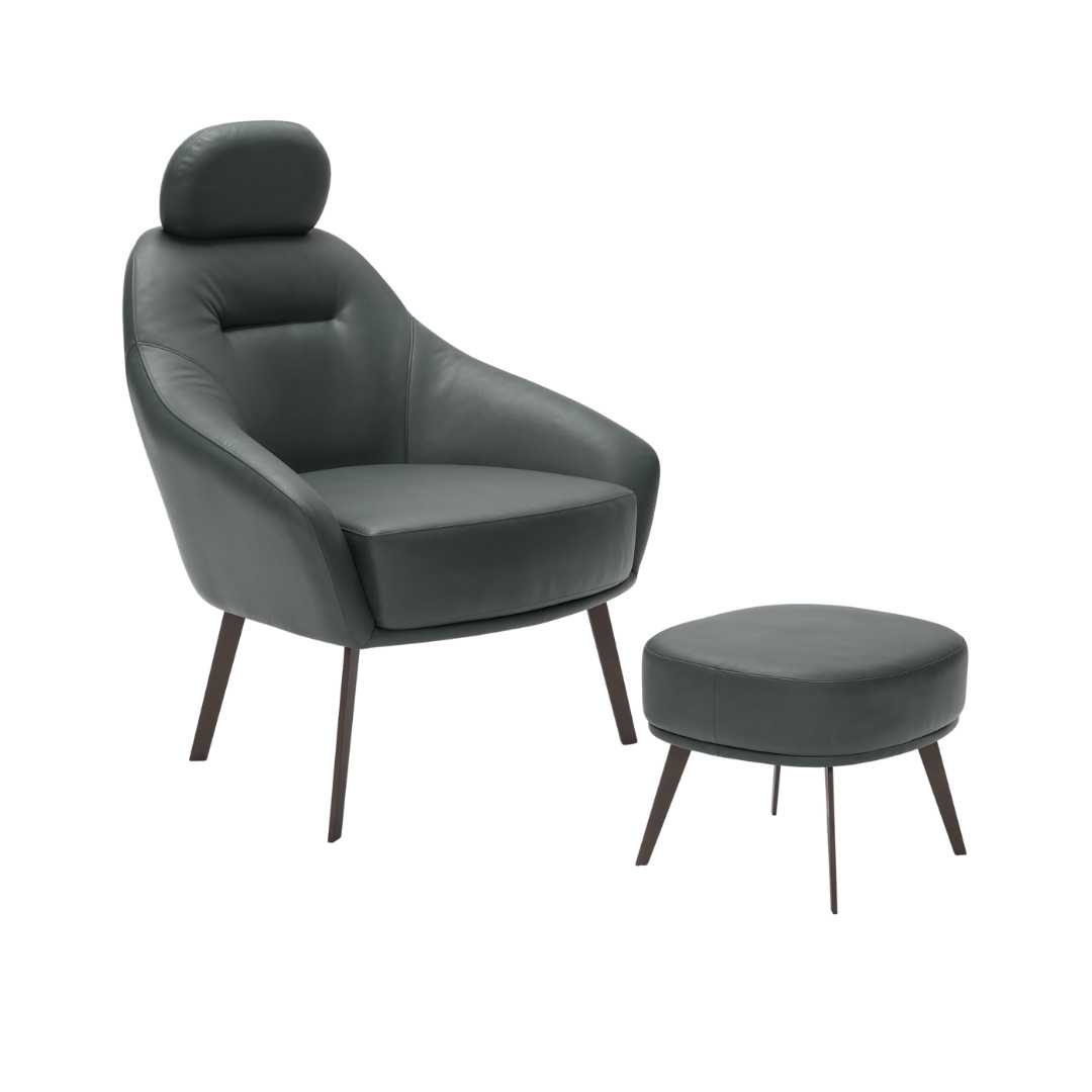 A Poltrona Siena combina design minimalista e ergonomia. Seu encosto elevado e curvas suaves proporcionam um abraço aconchegante, transformando cada momento em casa em puro bem-estar.