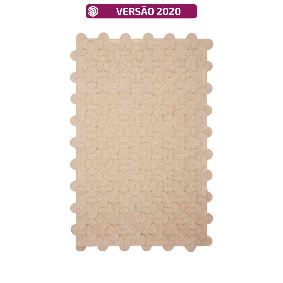 As pecas ovaladas entrelaçadas e sobrepostas, criam o Tapete Tambaki, criado pelo designer Sergio Matos para o Studio by Kamy, que faz uma referencia as escamas brilhantes do peixe com o mesmo nome