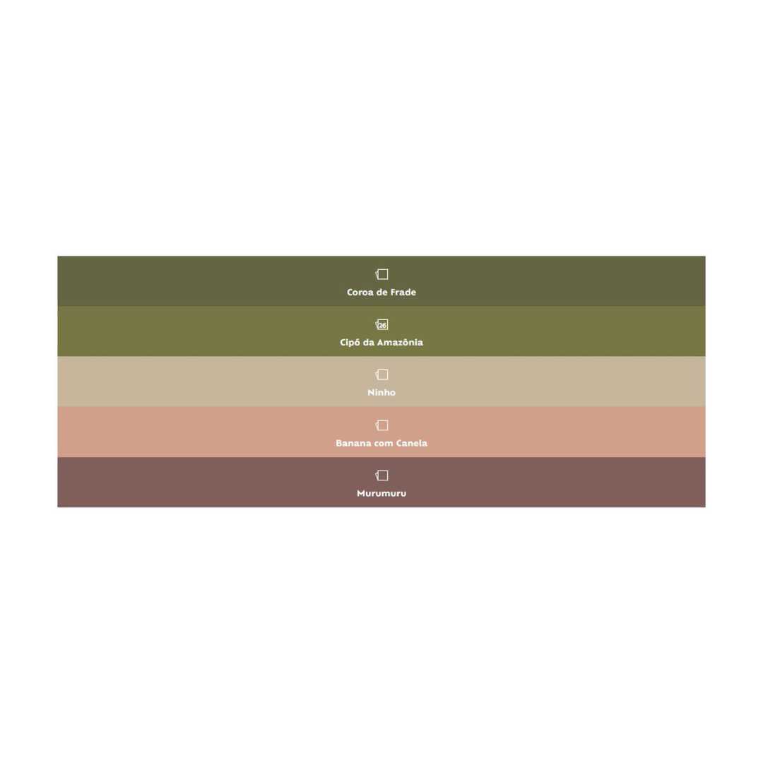 Por esse motivo, a paleta de cores Criar combina tons quentes, com essa familiaridade, incluindo uma das escolhas para Cor do Ano 2026, Cipó da Amazônia, Coroa de Frade, Ninho, Banana com Canela e Murumuru.
